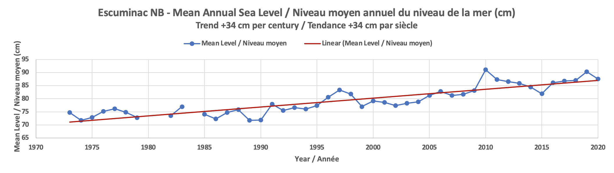 Atlantic Canada is expecting a 1 metre increase in sea level by 2100 and 2 metres or more by 2150. According to the Intergovernmental Panel on Climate Change (IPCC) 2021 AR6 report, global mean sea level rise could be approaching 2 metres by 2100 and 5 metres by 2150, under a very high GHG emissions scenario (SSP5-8.5), which cannot be ruled out due to deep uncertainty in ice sheet processes. There are regional variations to sea-level rise and it will affect communities in different ways, for example, First Nation communities are particularly affected by these threats due to their limited infrastructure funding and land base. Coastal ecosystems are already impacted by the combination of sea-level rise, other climate-related ocean changes, and adverse effects from human activities on ocean and land.